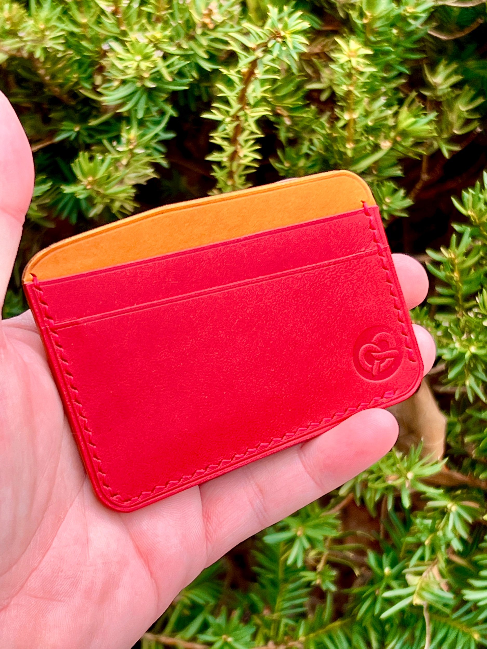 This fun color combo is great for any Loyal Fan whether in the Kansas City area, or worldwide! Four card pockets and one central flap that can hold bills, receipts, tickets, or whatever you like! Walpier Buttero leather in both red and yellow, hand saddle stitched with Japanese Vinymo thread.